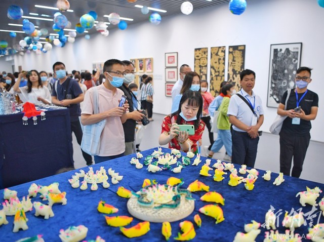 6月24日,市民在参观展览。当天,由湖南美术馆主办,湖南美术馆公共文化教育部、湖南师范大学美术教育研究基地承办的“卉木萋萋——湖南乡村美术教育成果展”在湖南美术馆开展,展出了剪纸、蜡染、米塑、泥塑、纸皮影、芭茅秆画、银箔雕刻等多样化教学作品350余件。展览持续至到6月30日,免费对观众开放。 湖南日报记者 傅聪 摄原文链接:https://m.voc.com.cn/wxhn/article/202006/202006242356417943.html?from=singlemessag