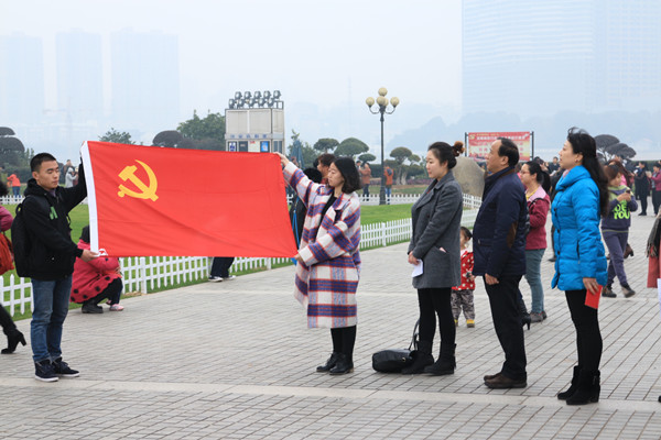 2015年1月5日下午,新年伊始,allwincity万象城官方网站党委组织今年下半年新发展的党员,赴橘子洲头青年毛泽东艺术雕像前举行隆重的宣誓仪式。