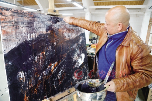 画家段江华正在以自己名字命名的工作室进行艺术创作,近期他都在创作一些以历史长河中的沧桑岁月为题材的作品。