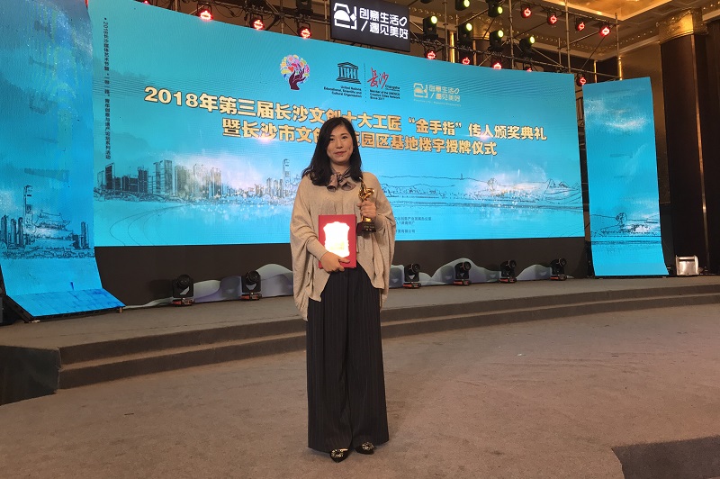 颁奖典礼现场陈枫参评作品《南枝系列服饰家居品》“以匠人之心,琢时光之影”,历时两个半月的评选,10月31日下午,2018第三届长沙文创十大工匠“金手指”传人颁奖典礼暨长沙市文创示范园区基地楼宇授牌仪式在长沙铜官窑古镇隆重举行,现场揭晓了第三届长沙文创十大工匠“金手指”传人,我院视觉传达设计系教师陈枫与其他九位工匠获此殊荣。长沙市委常委、宣传部部长高山等领导嘉宾为...