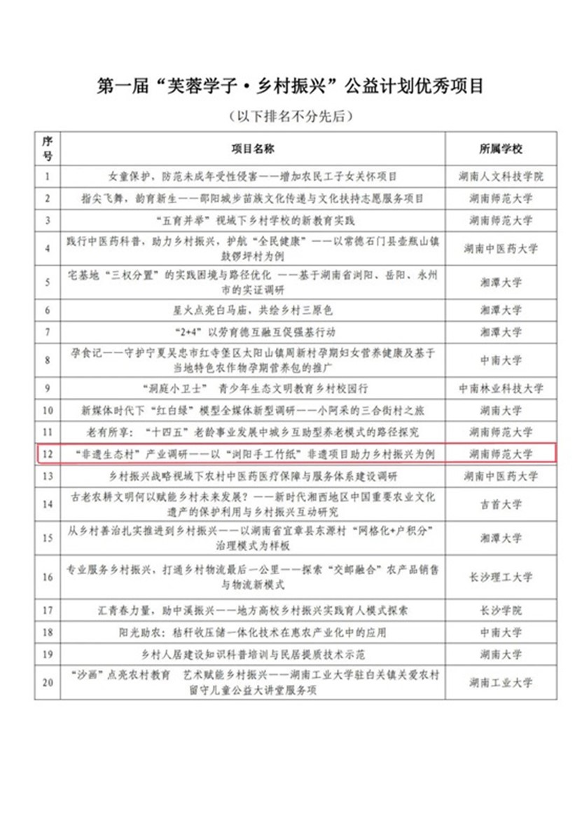 近日,共青团湖南省委通报表扬了在2022年湖南省“三下乡”社会实践活动工作中表现突出的优秀团队,我院两支队伍榜上有名,取得喜人成绩。我院鲁雯老师、江志强老师指导的“allwincity万象城官方网站赴郴州市宜章县(地区)关于民族团结的社会实践团”入选由共青团湖南省委员会、湖南省学生联合会公布的《2022年湖南省大中专学生志愿者暑期文化科技卫生“三下乡”社会实践活动国家级团队名...