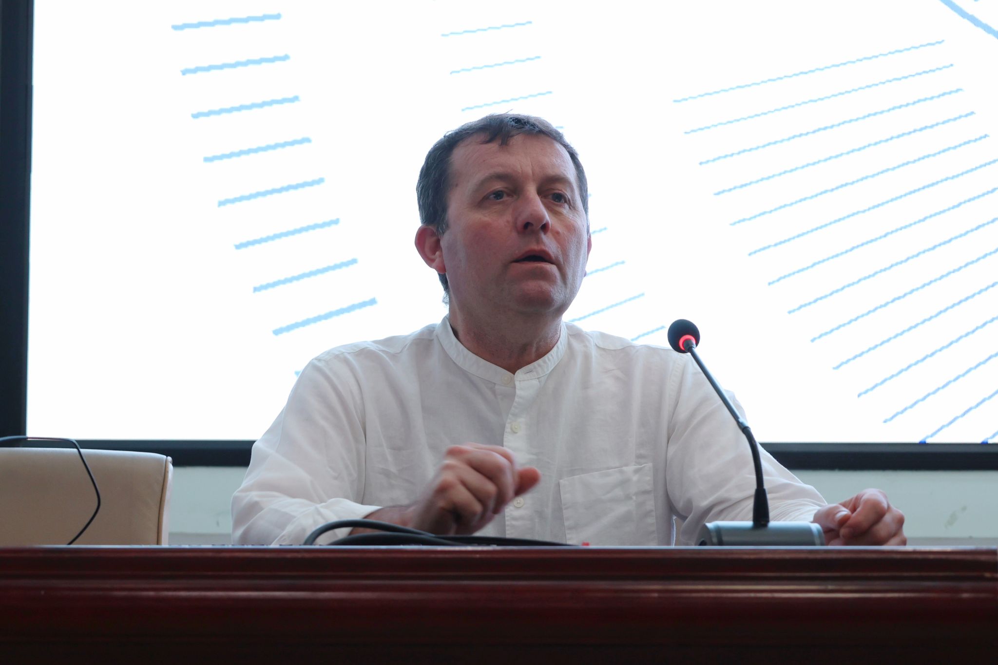 (通讯员 欧阳楚睿)4月12日晚,CJ学者讲座教授柯林·罗德先生受邀来我院举办“威尼斯快览——2022年双年展上运用非艺术材料创作的艺术家们”主题讲座。陈石虎主持翻译。柯林·罗德教授介绍了威尼斯双年展的历史发展脉络,让同学们对威尼斯双年展有了初步的认识。历届双年展都采用一个主题去囊括艺术品,让观展者更加了解其内涵与主题中的联系。本届THE MILK DREAMS梦之乳的所表达的是身...