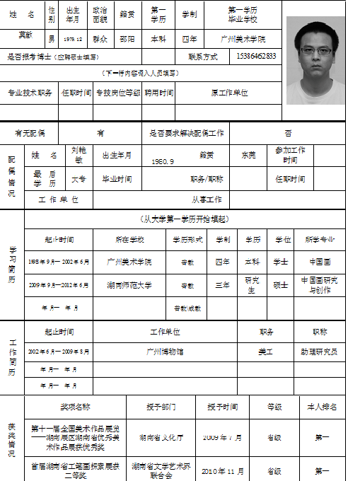 序号 | 应聘岗位 | 姓名 | 性别 | 专业(研究方向) |