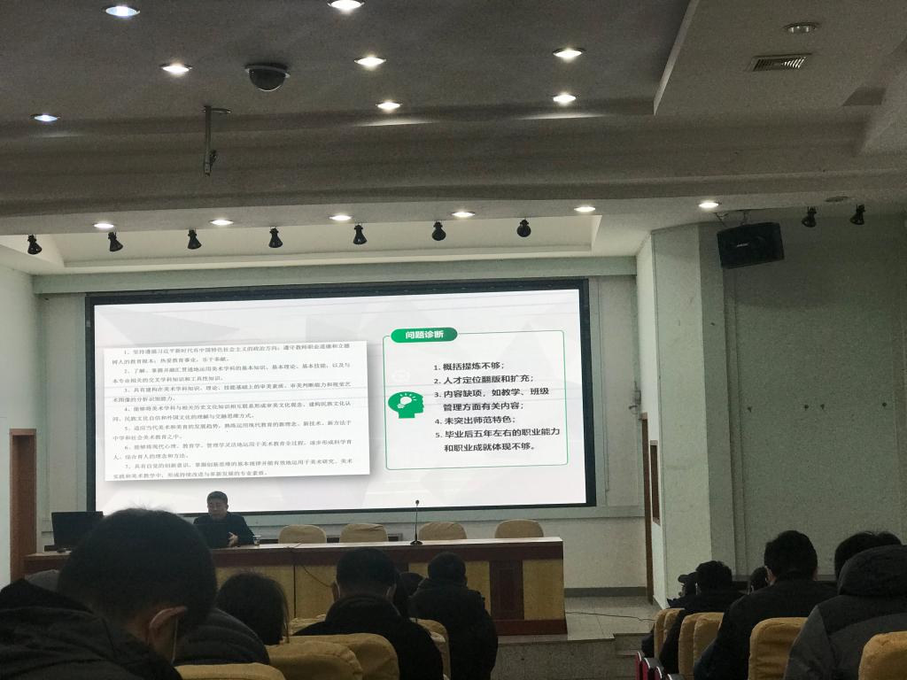教务处评建办主任银海强受邀来院作师范类专业认证标准解读报告,院党委书记许杭平出席并主持会议。美术学专业全体教师、近三年在美术学专业授课的其他专业教师和各系正副系主任参加了会议。