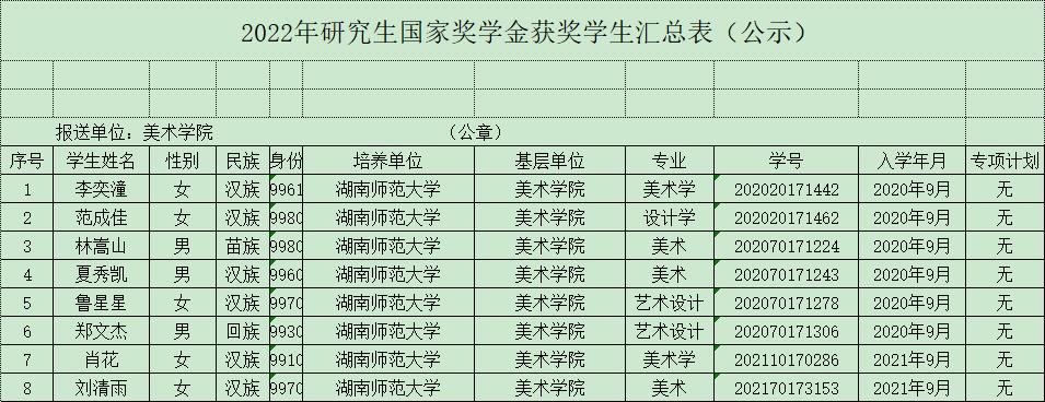 2022年研究生国家奖学金获奖学生汇总表(公示)