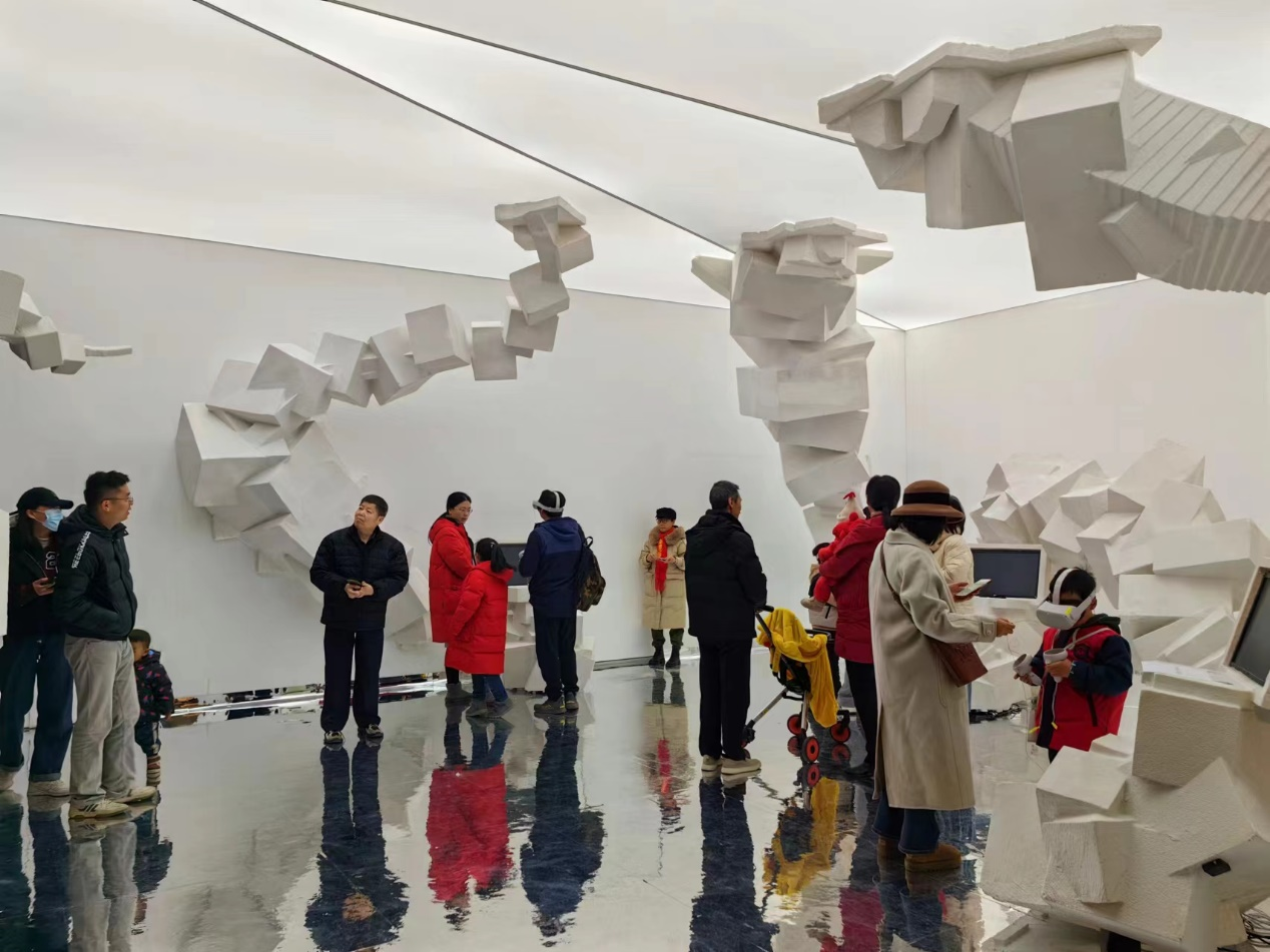 作品介绍:装置深入探索自然、社会与人的关系,巧妙运用材质与空间,传递出对慢生活的向往,激发观众的共鸣,使其领悟新的符号意义,感受自我意识的不确定性。借助几何学中的“fractal分形”概念,该装置采用3D打印方式,结合虚拟现实(VR)技术,在实景空间中重塑CG造型。分形,意味着随机、不确定、变化与协调。既是形体之间的互相呼应,也是彼此干扰的不确定因素。VR动态演绎实景形体,寓意内心意识的斑斓波动,两者相互依存,相互影响,共同创造出独特的艺术体验。
