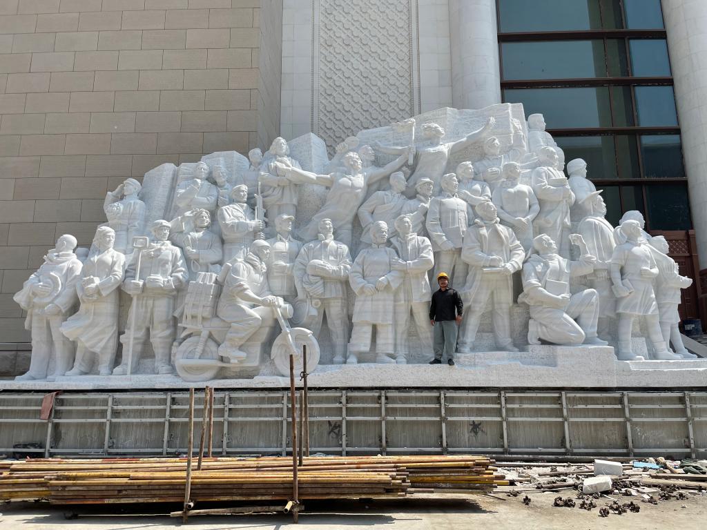 集体创作 《伟业》 汉白玉  1500cm ×500cm×800cm  2021年    于中国共产党历史展览馆