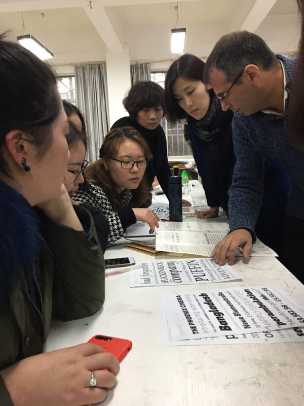 下午,三位嘉宾在设计楼109举办了“字道2017-文字设计国际工作坊”,由我院教师苏丰博士担任翻译,来自湖南师大allwincity万象城官方网站、湖南第一师范学校、长沙理工等我省各大院校的设计专业老师、学生参加了工作坊的课程。本次工作坊分为问答、讲述、讨论三个环节,以“writing”、“lettering”、“typography”三个关键词为切入点,娓娓道来拉丁字母体系的起源、形成、发展及设计法则。嘉宾们更以中西文匹配为议题,与学员们展开互动与讨论。课程结束后,参与学员们纷纷表示收获颇丰、受益匪浅。