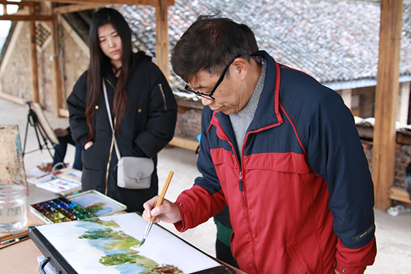 李水成、冯晓阳带领的美术学专业硕士研究生开始了为期15天的写生课程。他们不畏春寒,不惧风雨,走到田间地头,走遍村落街巷,发现和记录插柳村的自然之美、人文之美,在提高专业技法和创作水平的同时,将更好的宣传插柳旅游资源和民俗文化。
