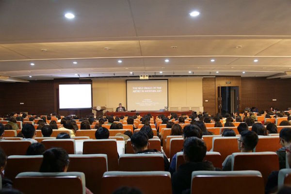 Fred S.Kleiner教授以肖像画与自画像的区别为切入点,展示了古希腊和古罗马的肖像画,并向同学们讲述了中西方肖像画的差别。他将故事与画作相结合,生动形象地再现西方画家们自画像的内涵,向同学们传达了这些自画像背后蕴藏的深远意义,现场掌声不断。