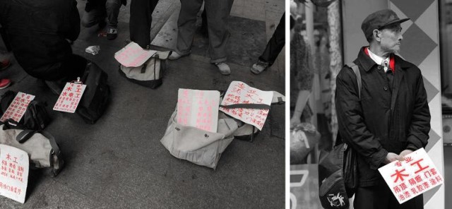 “砼”是指混凝土,而“砼人”就是从事相关行业的人员。在走访、暗访的过程中,学生们经常看到带着“木工”、“水电工”、“泥水工”牌子的工人在这一代游荡,后来一问才知道,社区所在附近曾是国办的招工场所,搬迁后,工人们还是习惯在这里等工,而长沙市民也喜欢来这里寻找工人,一来一去,这里形成了一个默认的劳务集散地。