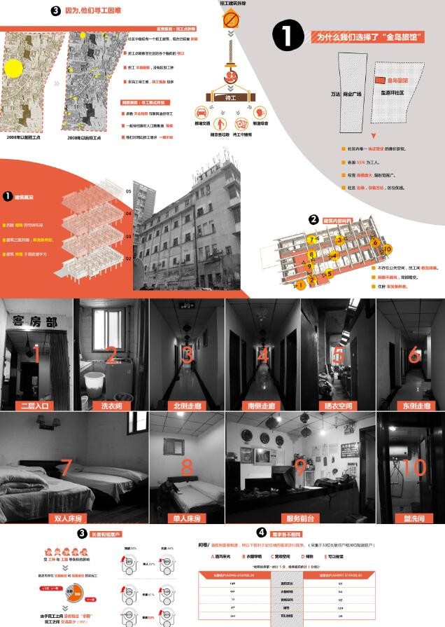 同学们在调查中发现,工人们滞留在此都是为了找工作,所以短期寄居在社区的各个旅馆中,一旦有工作就会离开。让易奕吃惊的是,“这边的旅馆大大小小,正规的非法的混在一起,很便宜,最便宜的甚至只有5块钱一晚,十来平米的地方住着十几个人。”