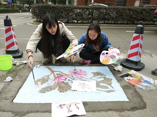 负责该活动的院团委书记江志强说,木兰路是校园一景,井盖手绘为木兰路的冬天增添了一分美丽与趣味。