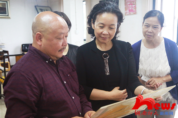 胡东风代表省委统战部对段江华致以诚挚的问候,对段江华去年3月勇救落水女童的壮举表示敬佩。她说,一年多来,段江华一直积极配合参加先进事迹宣传工作,为社会传递了正能量;他募捐、义卖等善举值得广大党外代表人士学习。胡东风希望段江华继续发挥专业优势,为湖南艺术事业的发展提供活思路、新思想。