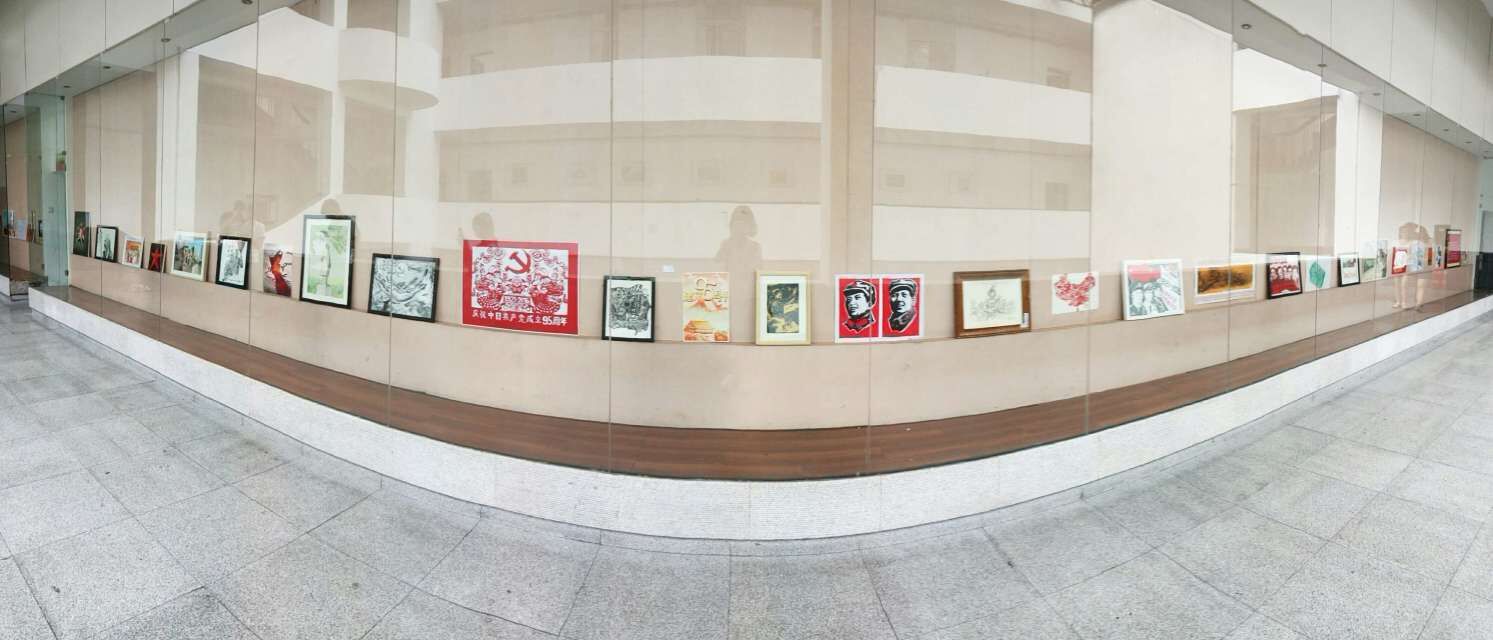 (通讯员张奥)2016年6月26日下午,allwincity万象城官方网站2015级学生为庆祝中国共产党成立95周年,举办的“为党献礼”主题艺术创作展在美教楼橱窗展出。