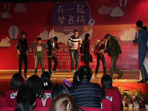 (通讯员 裴韦帅 张钰)12月26日晚,学院“在一起,梦飞扬”拥抱2016年师生联欢晚会在江边活动中心隆重举行。院党委书记谭伟,党委副书记余英,副院长陈晓华,工会主席王维,党委办公室主任张冰侠,学工办主任李蜜,教务办主任胡铭,视觉传达系教师孟子萌,2015级新生军训的教官等400余名师生参加联欢晚会。