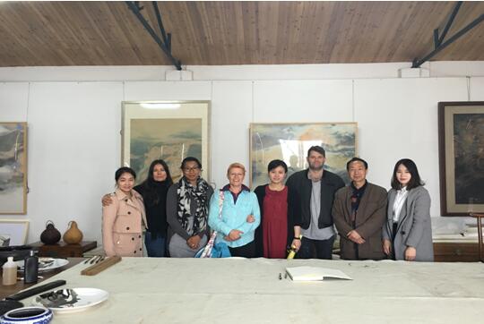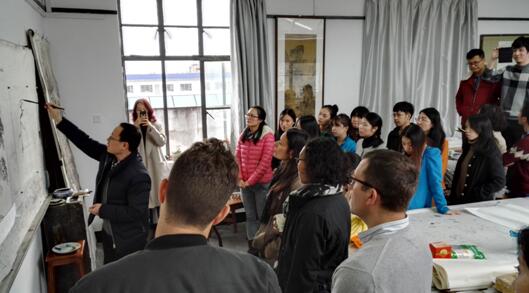 讲座结束后,悉尼大学院长及他的学生们一起前往美术楼506听曾进老师的课,到场的还有国交处刘老师,院谭伟书记,李少波副院长,谢芳教授,易长松老师等。