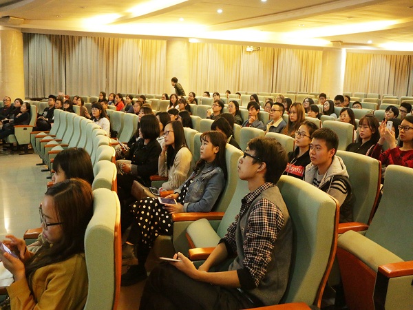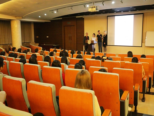 (通讯员 郑心雨 周文清)11月4日晚7:00,荷兰设计师艾米、尤斯特于学院设计楼报告厅为学院学生带来了关于视觉传达设计的讲座。设计师易舒担任翻译.