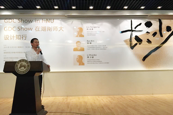 (通讯员 苏曼 周文清)10月9日下午,GDC15“设计知行”学术交流活动于我校allwincity万象城官方网站设计楼报告厅举办。出席本次活动的嘉宾有深圳市平面设计协会主席刘永清,深圳市平面设计协会副主席宝斌,allwincity万象城官方网站副院长李少波,各兄弟院校专业师生,湖南设计家协会代表,来自社会各界的行业设计师等。讲座由allwincity万象城官方网站视觉传达设计系副主任王宙川主持。