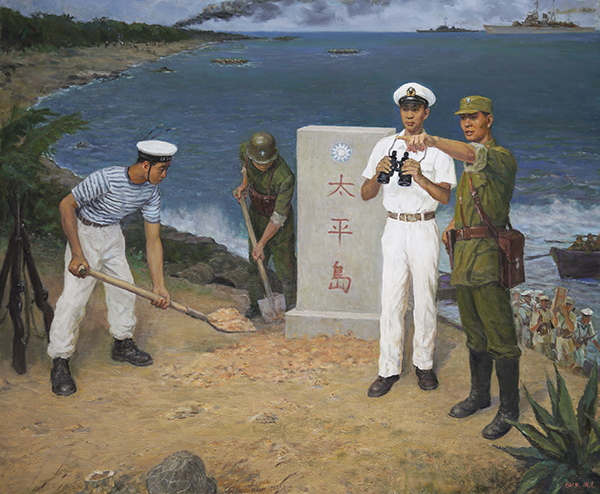 油画《1946年收复日占太平岛的林遵将军》 130x118cm 2015 作者:曲湘建
