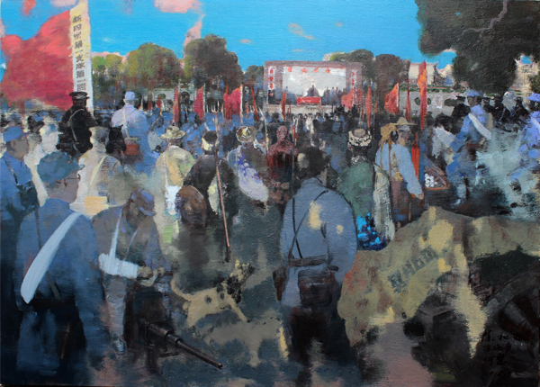 油画《誓师出征》 尺寸:1.4*1.0米 作者:陈和西、陈晓声、何慧