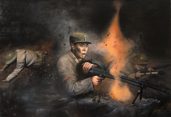 油画《军人没有不得已的时候》尺寸:1.2*0.9米作者:党朝阳、李贤鸿
