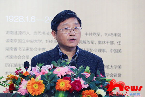 朱训德对出席活动的领导嘉宾表示热烈欢迎。他深情回忆了与颜家龙先生的交往经历。他说,颜家龙先生是真正的书法家、顶天立地的湖湘文化人。颜家龙先生一生达到的高境界,他的勤勉诚恳,赢得了社会各界的赞誉。他为人师表,深受学生爱戴。朱训德最后说,颜家龙先生以高尚的品格为我们树立了文以载道的榜样,永远值得后人学习致敬。