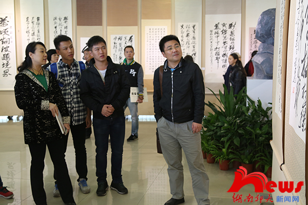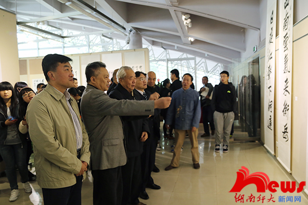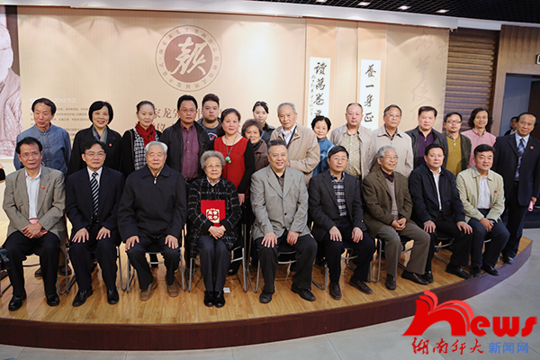 捐赠仪式后,参加仪式的来宾一同参观了颜家龙先生书画作品展,并举行了由湖南美术出版社出版的《怀文抱质·颜家龙中国书法教学文献作品集》首发仪式和颜家龙先生书画艺术研讨会。朱训德、黄铁山、陈曦民、胡立伟、杨远征、胡紫桂、殷保康、张锡良、姜坤、郑小娟、周平、夏时、邹方斌、姜松荣、周功华、田绍登、江波,我院退休老同志、书法专业研究生等参加研讨会。研讨会由我院谢雱教授主持。