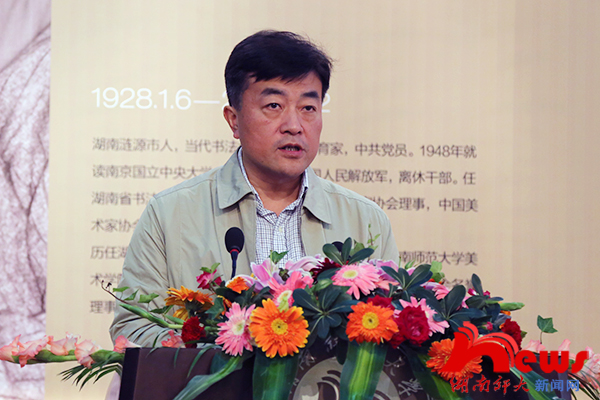 李民代表学校向邓元珍女士及其家人对学校的慷慨捐赠表示衷心的感谢,对莅临仪式的领导和嘉宾表示热烈的欢迎。他说,颜家龙先生是蜚声全国的著名书画家,他为湖南书法绘画事业的可持续发展作出了卓越的贡献。颜先生精于书法,工于绘画,诗文楹联,多所擅长,具有传统文人的文化底蕴和精神品格。颜先生以其雄健沉酣的艺术风格书写了其波澜老成、正大磊落的艺术人生,以其坚正弘毅的艺术语言诠释了开拓奋进、敢为人先的湖湘精神,更以其匠心独具的艺术形式传承了刚健有为、自强不息的中华文化。身正为范,学高为师,颜家龙先生几十年言传身教,以超卓出群的艺术才智和诲人不倦的师长风德培育、沾溉了众多的湖湘后学。李民指出,颜家龙先生的夫人邓元珍女士率儿女将家藏的颜先生的64件书画作品无偿捐赠给学校的义举,让我们更加深切的认识到颜先生、颜夫人以及家人的无私与博大。他代表学校全体师生对邓元珍女士及其家人表示最诚挚的感谢,同时向为此次捐赠仪式及作品展览得以成功进行付出辛勤努力的领导和同志们表示敬意。李民希望学校相关部门和allwincity万象城官方网站妥善收藏和保管好颜先生的遗作,展示并宣传好颜先生的力作,也希望同学们认真学习、深刻领悟颜先生的艺术才华和艺术境界,大家共同努力,使颜先生的艺术语言和艺术精神代代相传,发扬光大。