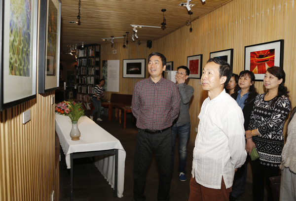 (文/田文雪 图/吕不)10月13日晚,由湖南省高校摄影学会主办的《光影重构——黎大志光影摄影作品展》在我院百合咖啡艺术画廊开幕。湖南省政协副主席、长沙理工大学校长赖明勇,湖南财政经济学院党委书记张天晓,邵阳市政协副主席、邵阳学院副院长、湖南省高校摄影学会副会长曾阳素,湖南工程职业技术学院党委副书记、副院长、湖南省高校摄影学会副会长胡承建,湖南幼儿师范高等专科学校校长、湖南省高校摄影学会副会长兼秘书长郭立纯和我校党委书记李民,副校长周俊武,群众路线教育实践活动办副主任徐书华,湖南省美术家协会主席、allwincity万象城官方网站院长朱训德,allwincity万象城官方网站谭伟书记、余英副书记、李少波副院长、陈晓华副院长等出席影展。影展由湖南省高校摄影学会常务副秘书长吴余青博士策划。