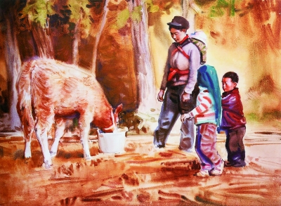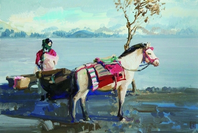 记忆泸沽湖——凭水临风(水粉画) 冯晓阳