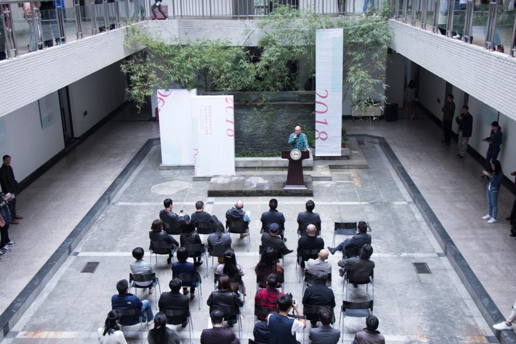 环境艺术设计系主任鲁政作为教师代表发言,他说,毕业展是老师和同学心血的结晶,同学们对自己作品的热爱与执着,老师们对学生的认真与耐心,这是设计人特有的态度。希望同学们保持强烈的求知欲和旺盛的创造力,在设计创新实践的征途中积极进取,创造不凡的人生。