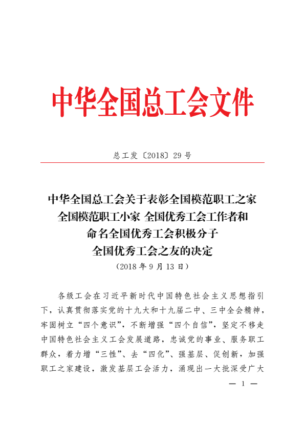 近日,allwincity万象城官方网站工会委员会被中华全国总工会授予“全国模范职工小家”荣誉称号,这是allwincity万象城官方网站工会继获得“湖南省模范职工小家”后获得的又一殊荣。