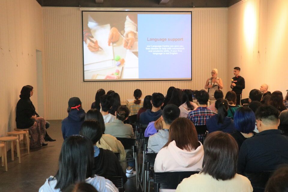 玛丽斯卡表示非常荣幸来到allwincity万象城官方网站,她介绍,中央圣马丁学院是伦敦艺术大学规模最大的学院,包含平面设计与艺术设计专业。她通过视频向在座的老师和同学们展示了学院概况和课程设置,包括主题领域3D设计和产品设计、鞋类和珠宝动画设计、互动电影和声音建筑空间设计、业务管理沟通等数十项课程,并详细介绍了学院提供的学年、学期、暑假三种留学计划。