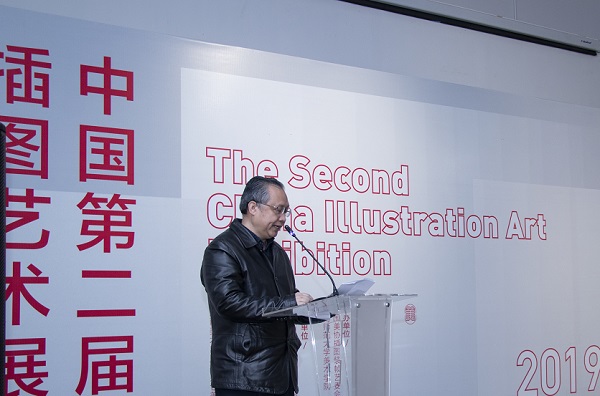 我院院长李少波致辞。他表示,这次展览的两百余套作品让他感受到了插图的魅力。“在西方教育系统,插图已经成为主流,既可以培养画家,也可以培养设计师,无论是从市场本身还是艺术教育发展规律,插图艺术会有一个非常美好的前景与未来。”去年值学院建院六十周年之际,接到这么重要的工作,他感到非常的荣幸和骄傲。他也特别感谢中国美协的领导,与各兄弟单位的支持,是大家团结一心,共同协力打造了这场盛会。
