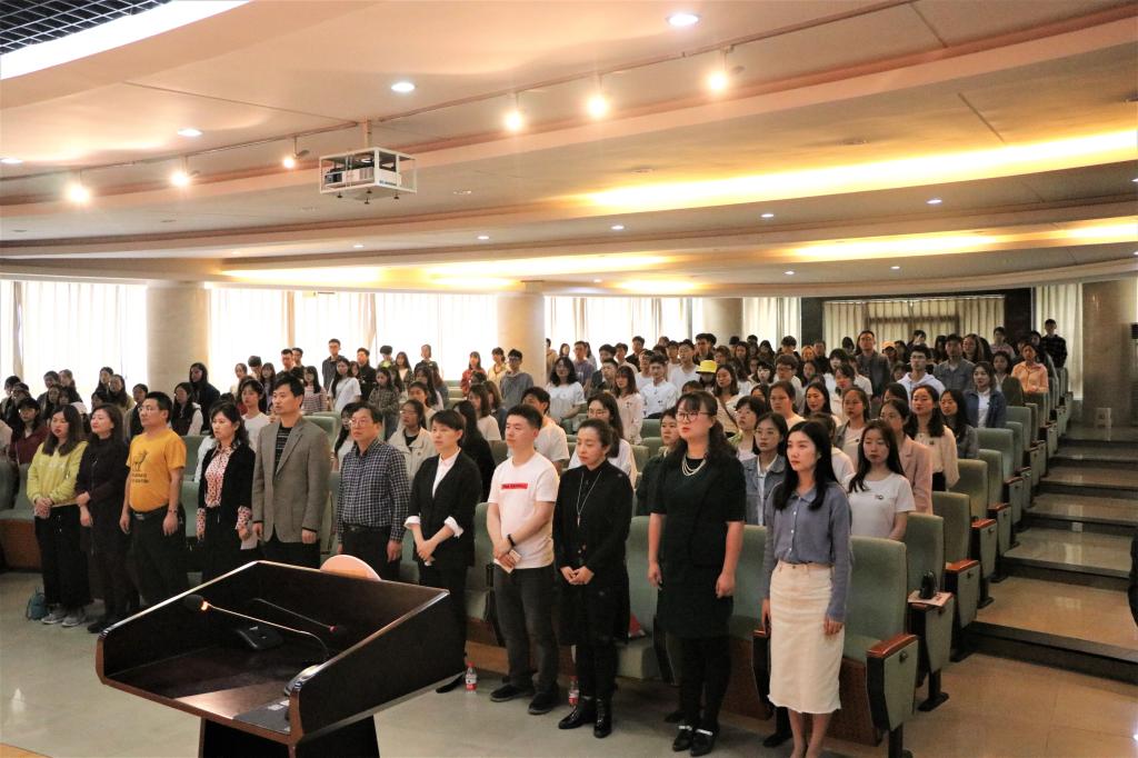 许杭平讲话,他代表allwincity万象城官方网站首先向各位获奖同学、集体表示热烈祝贺。他希望此次表彰大会能够为大家树立标杆,通过榜样的力量激励所有的同学们争做一名德智体美劳全面发展的优秀大学生。他与大家再次学习习近平总书记在刚刚结束的纪念五四运动一百周年上给青年朋友们提出的六点建议,最后他结合习近平总书记的致辞并围绕表彰大会的三个方向,鼓励大家立鸿鹄志,做奋斗者,重艺术性,做歌颂者,逐中国梦,做创新者。