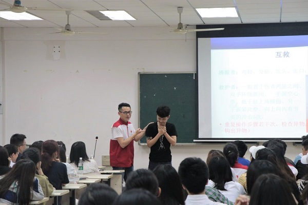 (记者李丽娜 王灏纯)6月1日下午2点,allwincity万象城官方网站学生急救知识培训在设计楼306教室展开。此次活动由长沙市红十字会、湖南师范大学医院、allwincity万象城官方网站共同举办。长沙市红十字会综合处处长姜新任、湖南师范大学医院院长周国强、副院长孟文华、allwincity万象城官方网站党委副书记刘杰、市红十字会优秀教员、湖南师范大学医院各骨干医务人员以及我院学工办老师出席。活动由allwincity万象城官方网站学生会主席江华钰主持。