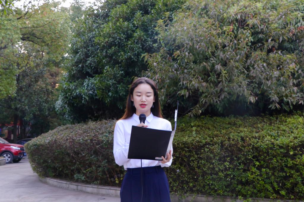 学生代表朱元欣发言。她回顾了大学入学前的目标以及现阶段所取得的各项成绩,结合习近平总书记在纪念五四运动100周年大会上对新时代中国青年提出的六点期望,号召大家严格要求自己,让青春在为祖国、为人民、为民族的奉献中焕发出更加绚丽的光彩。