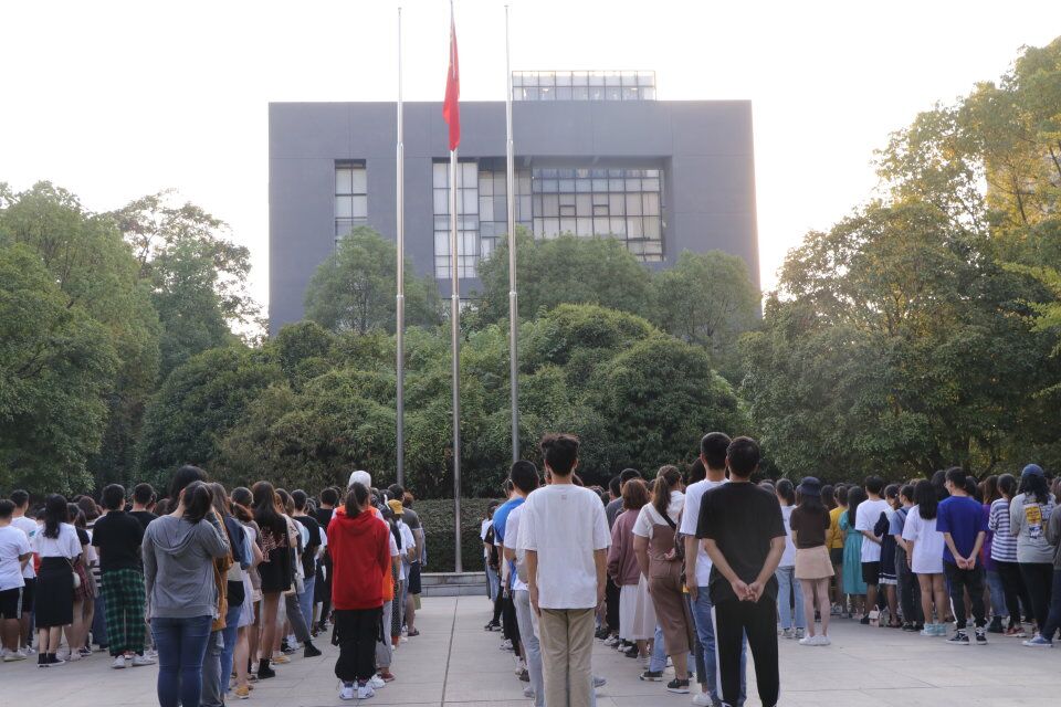 许杭平讲话。他回忆近代中国从鸦片战争到新中国成立这一段血泪史,再到改革开放以来这一段奋斗史,强调如今的中国已经站起来,富起来,但同学们依然要牢记历史,做到心中有国旗,心中有祖国。他鼓励同学们要刻苦学习,努力奋斗,立报国之志,弘扬爱国主义,做中国强起来的建设者和见证者。最后他祝愿祖国更加繁荣昌盛。