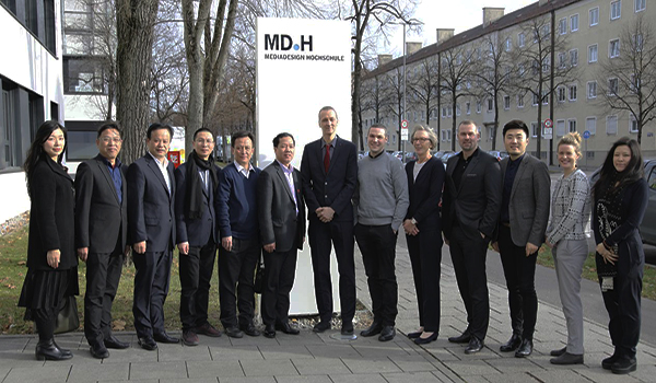 12月7日至9日,湖南师大代表团一行参访了柏林媒体设计学院慕尼黑校区及其附属高中、创新中心,并参观了数字电影设计专业及游戏设计专业本科学生作品展。今年,我校已与德国柏林媒体设计学院向中国教育部申请,合作举办艺术设计学专业本科教育中外合作办学项目。