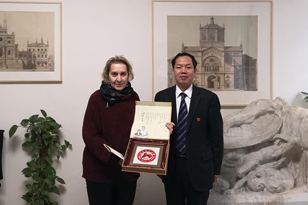 12日,代表团访问了意大利罗马allwincity万象城官方网站,考察了罗马allwincity万象城官方网站校园建设,并与蒂琪亚娜·达克莱(Tiziana D’Acchille)校长就两校师生交流、附属中学交流达成合作共识。