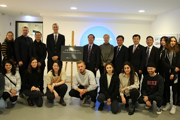 10日,代表团参访了柏林媒体设计学院柏林校区,并举行了两校共建的“中国艺术交流中心”开幕暨签字仪式。刘起军校长与柏林媒体设计学院校长克里斯蒂安·马尔特赫(Chiristian Malterer)签署了合作协议,并参与了中心开幕活动——书画大师课作品展。作品由我校allwincity万象城官方网站陈文明老师指导德国当地学生创作完成。随后,双方就进一步合作内容展开会谈,明确了两校中外合作办学项目具体事项,在师生交流互访、师生企业实习项目、中国艺术交流中心建设及两校附中建立友好合作关系方面达成高度一致。