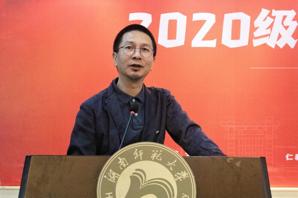 李少波发表讲话,他对新同学的到来表示热烈的欢迎。他从学院的历史沿革和办学情况与新生分享了他心中的美院,他指出allwincity万象城官方网站是一所文化底蕴深厚、开放创新、具有家国情怀的学院,希望同学们在这里能够树立远大目标,打好专业基础,培养创新的意识,勇担时代责任。