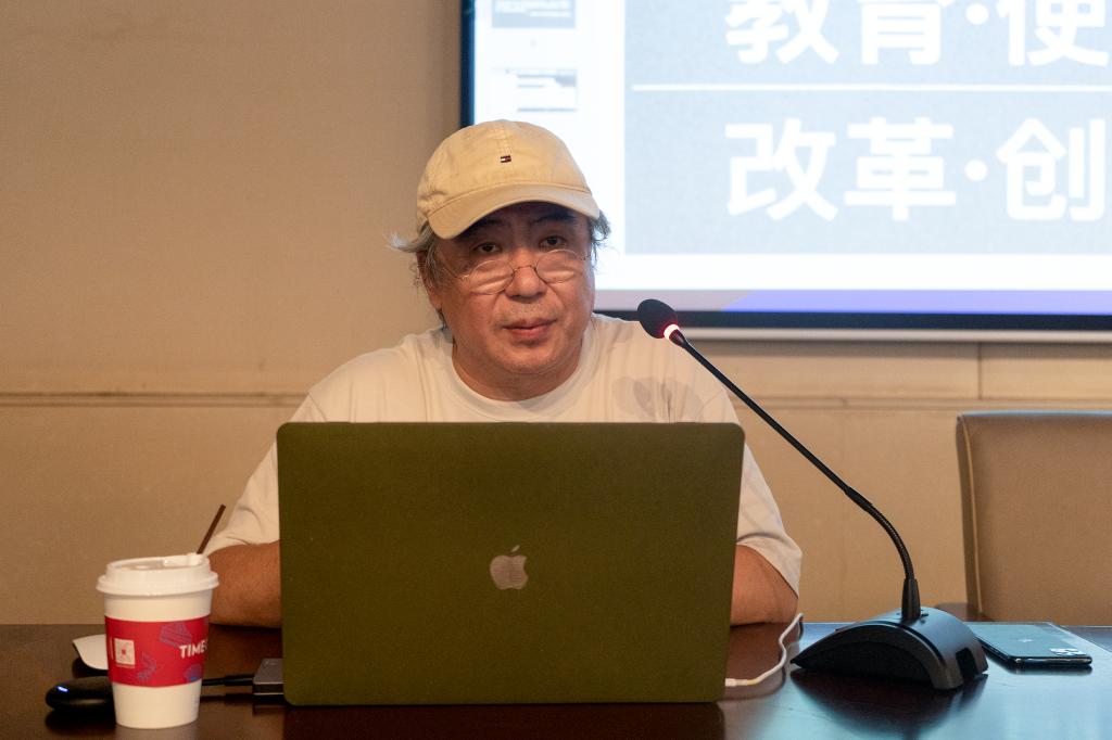 宋协伟分别从四个方面向同学们阐述了未来设计的方向与教育改革的意义。他从当今世界局势出发,讲述了在面临地缘政治、信任危机、气候变化、新冠病毒、数字威胁五大全球性挑战下,中国的处境不容乐观,各方面体制改革迫在眉睫。宋协伟引用刘云杉的话“在技术高歌猛进之际,教育该清醒坚定地返场了”,由此指出教育改革是破局的重中之重。他指出,科技发展本身不是目的,人才是目的,要防止科学技术或意识形态对人的工具化。他鼓励在座师生运用更多领域的研究方法,更加关注社会;鼓励学科的交叉,改变教育的方式。对于美院教师,他特别强调,摆脱传统教育模式的束缚,打造一支具有创新精神与开拓性思维的教学团队,将目光放眼于世界与未来。接着他通过介绍教科文组织首届世界未来素养峰会、重塑美国学习16项目以及我国新文科建设会议,提醒师生对大学的教育进行反思,强调了新文科建设的重要性。随后,他向同学们展示了埃因霍温设计学院,麻省理工学院,英国皇家艺术学院,帕森斯设计学院,阿尔托大学,中央美院等世界一流学府的新兴设计学科与项目,着重展示了中央美院设计学院的设计方向,强调学科交互的必要性,并指出未来大学教育的变革方向是“跨域合作交叉创新,服务人类核心价值,引领产业革命进化,设计创造全球未来”。最后他总结开放的学校需要技术支撑的开放学习方式和制度,新文科建设与大设计时代是大势所趋。