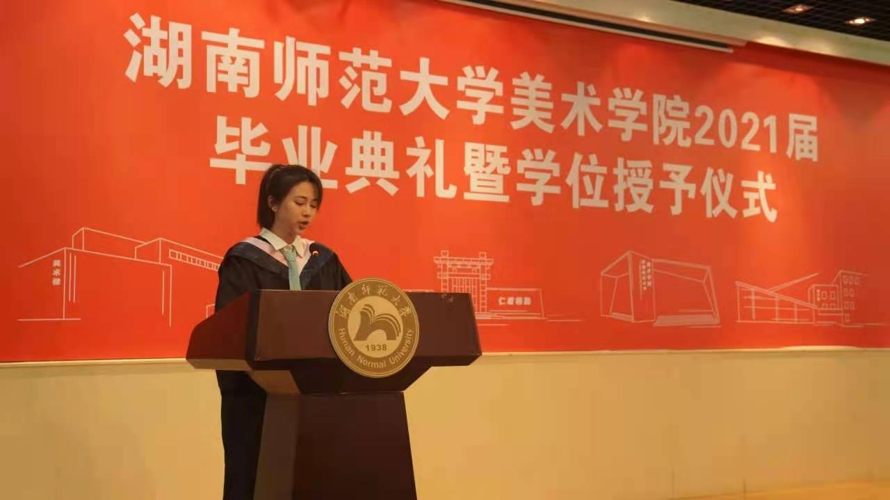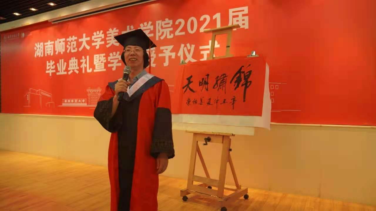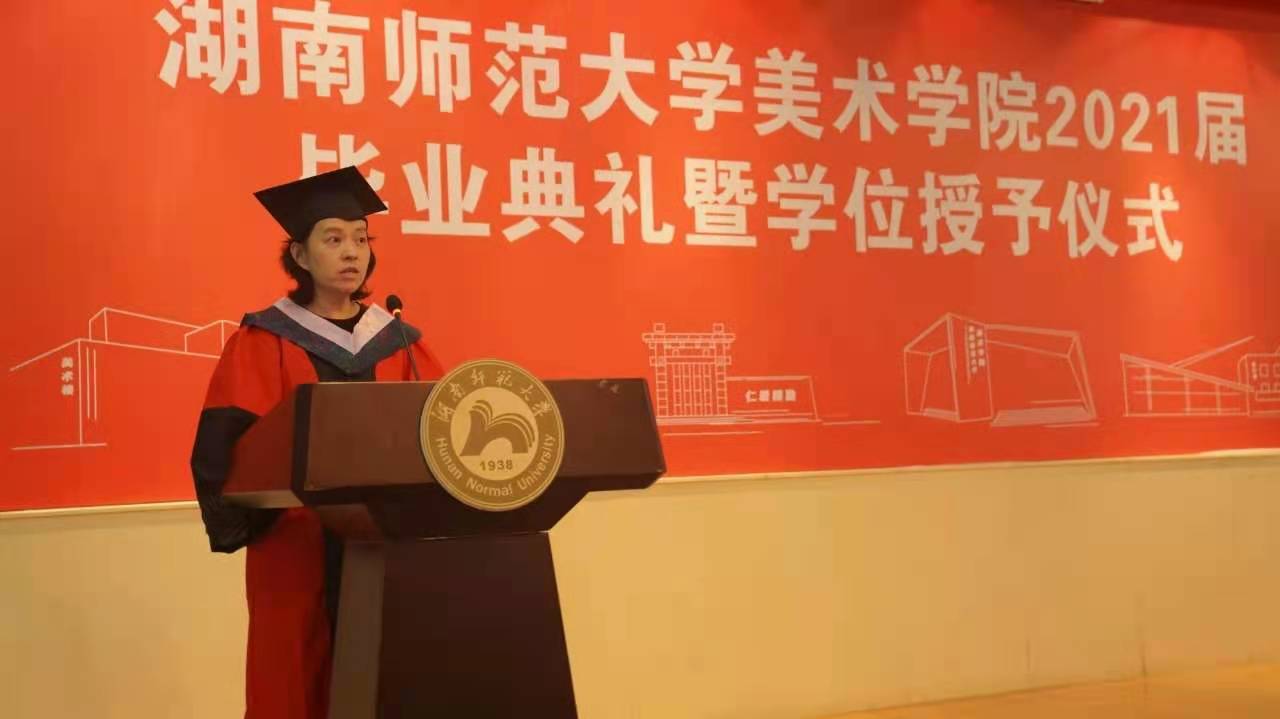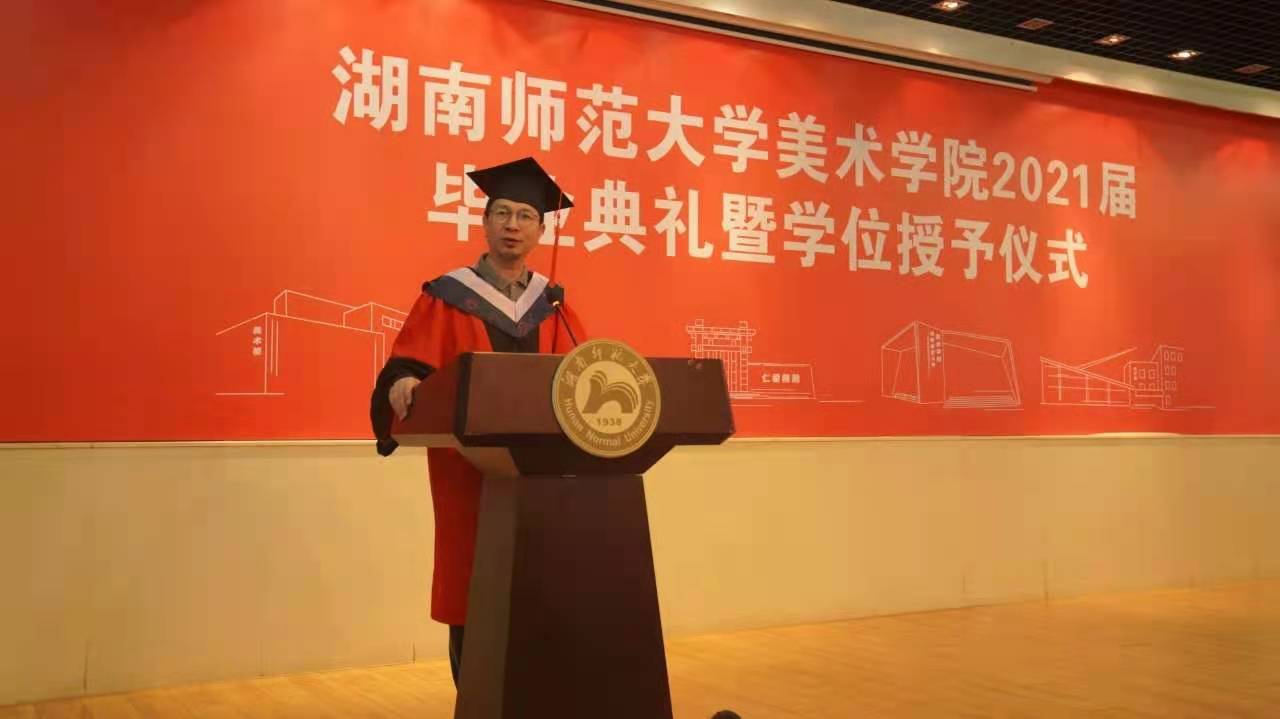 李少波首先代表学院感谢全体老师的辛勤付出。他提到当今社会日新月异,所以对今天的人才提出更高的要求,要不断学习,不断创新。他希望同学们要敢于面对将来人生道路上的每一次困难,也要用勇气、良心、底线来面对挑战,坚守初心,实现人生理想。他也肯定了选择读研读博的同学的选择,鼓励他们继续学习精进。他希望大家面向国际同时也要结合自身的传统文化优势,带着这样一种视野与文化自信,在今后的的学习和工作岗位中不断努力,最后他祝福毕业生人生道路、艺术道路一帆风顺。