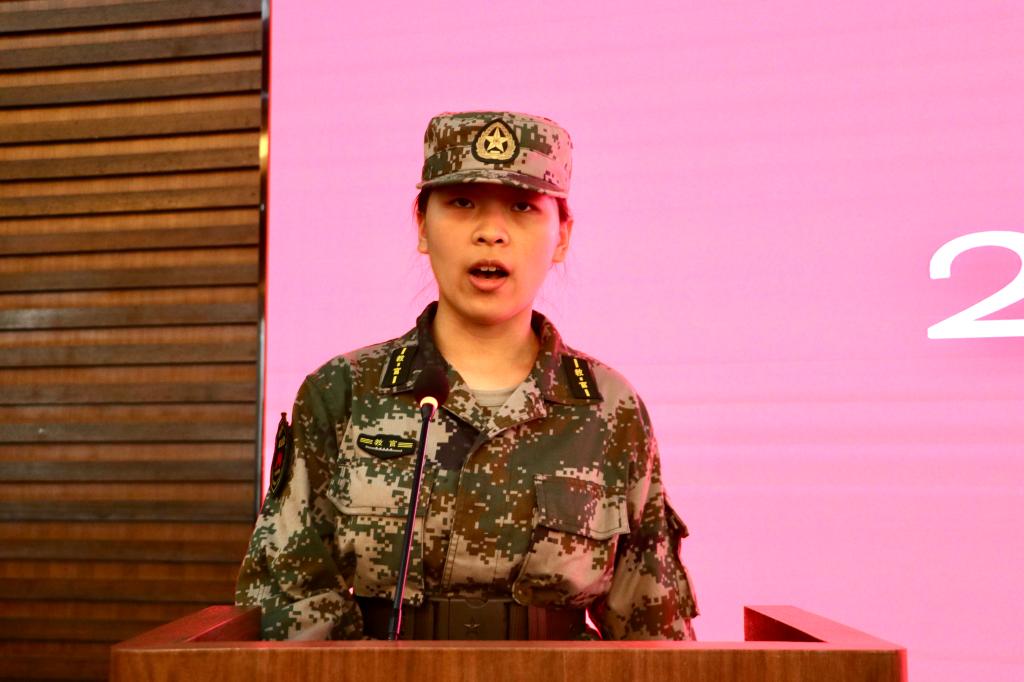 研究生新生代表刘雨荷发言,她她表示在研究生这个新起点上,她会找准目标,制定计划,锲而不舍,丰富自己的研究生生涯。
