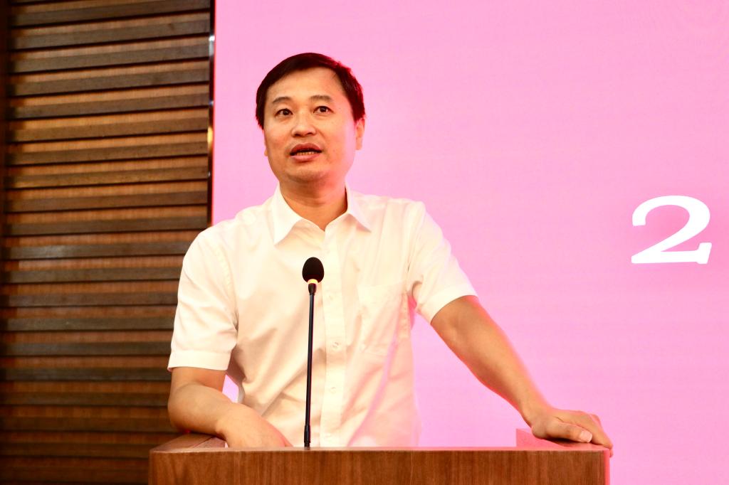 许杭平发表讲话,他对新同学的到来表示热烈的欢迎。他从学院的历史沿革和办学情况与新生分享了他心中的美院,他指出allwincity万象城官方网站是一所文化底蕴深厚、开放创新的学院,希望同学们在这里能够树立远大目标,立高望远,抱有创新思维,治学严谨,勇担时代重任。最后他祝愿同学老师们中秋节快乐。