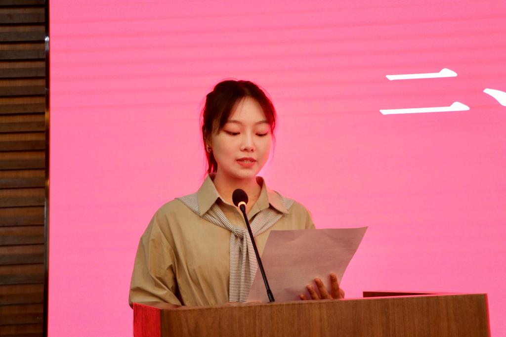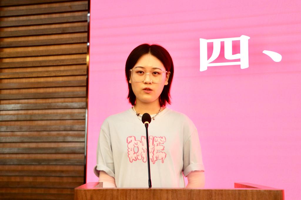 2018级甘熙媛作为老生代表发言,她分享了自己在美院的学习历程。她以自己的学校学习生活和比赛经历为例,鼓励大家在大学期间积极参加学校的各项活动,大学除了学习知识之外,更重要的是提供一个学习的平台,很多知识不在书本中能获得,要以学习为中心合理安排自己的时间,要学会自律,成为更好的自己。