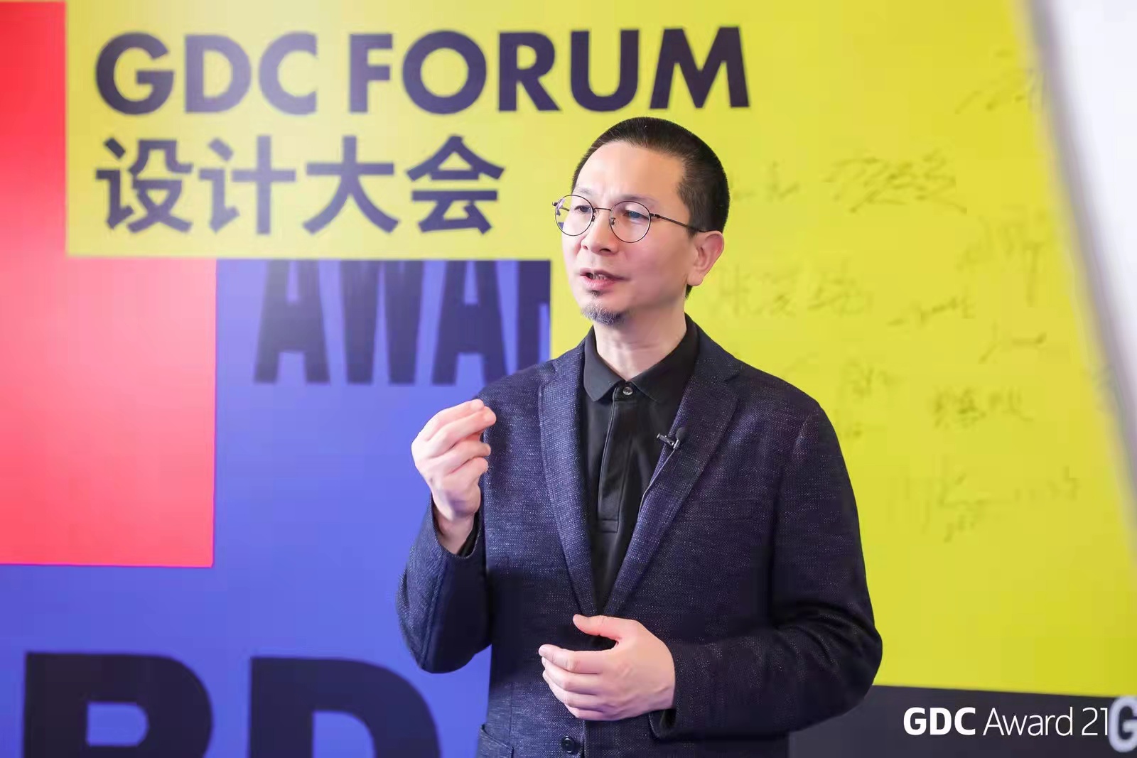 在本次GDC设计大会中,李少波做了名为“视觉体验生成”的精彩演讲,向国内外设计师分享了在文字设计、艺术设计领域的经验和设计实例,获得了与会嘉宾和线上线下观众的广泛好评。同时,还作为字体类别国际评审组组长,携手本·克里克、大黑大悟、杰伦·科尔维努斯等国内外知名设计家,聚焦“视觉探索、社会关注、科技融合”四个核心议题,对来自全球的一万余件入围作品进行了最终评定,甄选出本届GDC各项大奖。在会议与评奖的全过程中,李少波为GDC设计大会提供了前沿的设计分享和严谨的学术支持。