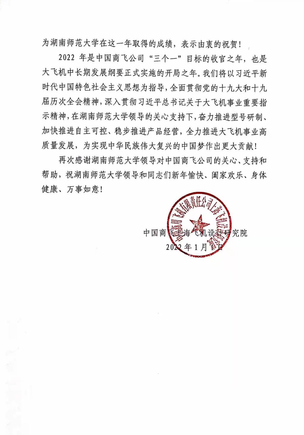 在2022年第一天,上海中国商飞上海飞机设计研究院来信致谢我校,表达最诚挚的祝福和最美好的祝愿。